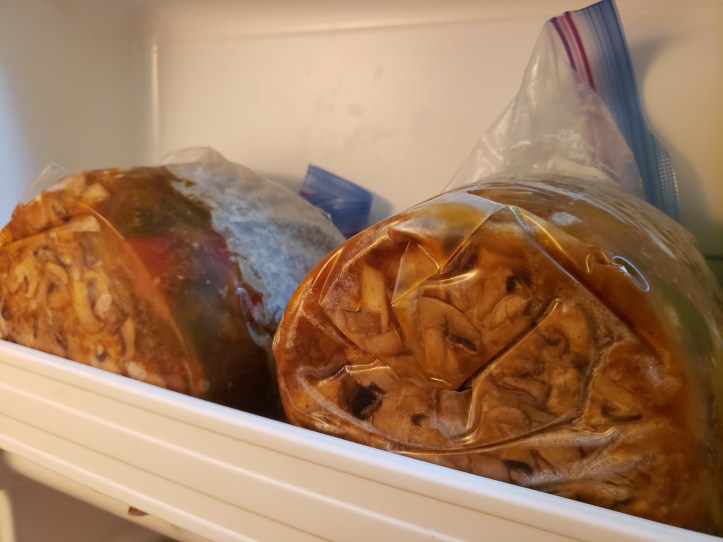 Before you even start prepping any freezer meals, double check that you have enough freezer space! This is the key to your success!! Only make what you have space for! I have definitely been overly ambitious about my plans to make a bunch of freezer meals only to find out they…don’t…fit!! That’s when I pull out my good ol’ cooler for a few days!