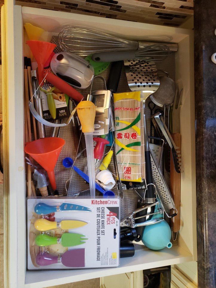 Ok, so everyone has one! You know the one! That one with the random utensils you never actually remember to use. The one where you always think to yourself in mid preparations of dinner, “I have a little gadget that is supposed to make this thing easier…where is that….” It’s the drawer where everything goes, but nothing seems to really live there. The drawer used for every purpose and yet no purpose at all.