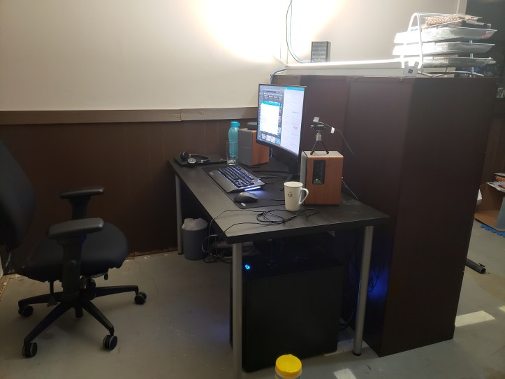 A lot of people have been working from home through this pandemic. My husband occasionally had some work from home days prior to COVID, but…his home office didn’t have the best…umm…feng shui, if you will. A few years ago I started painting half of the basement, but with the home office already set up, I hadn’t painted the office side of the basement yet.