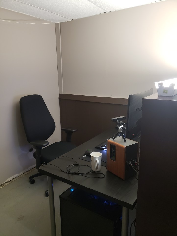 We tried to think of all of our options. We thought about doing a bit of renovating in the basement (it was “faux” finished when we moved in and we have been making do since…so already it’s not the prettiest). We thought about the simplicity of installing a wall to separate his office a little more. But considering the state of the rest of the basement we would just need to tear down the wall when we did a more complete reno of the basement.