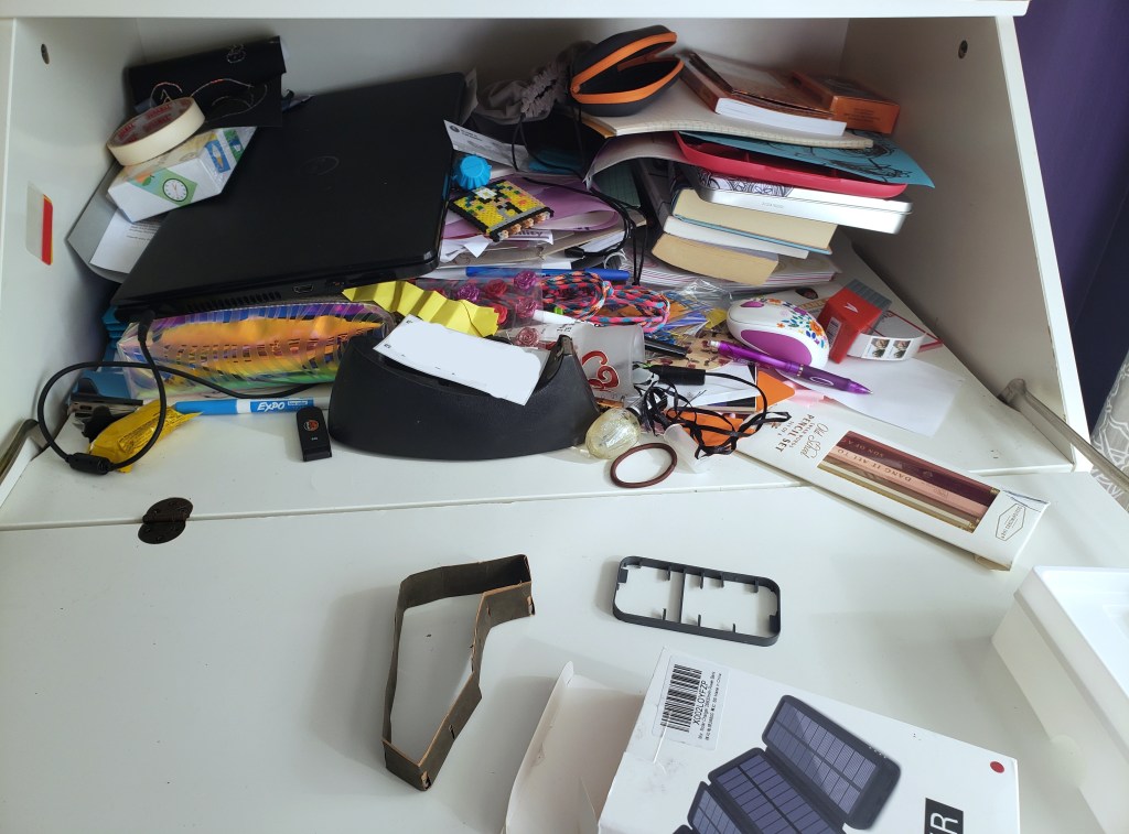 In my last hour, I decided to tackle my own desk. It has been a neglected space for a while, and despite my cleaning it somewhat regularly, it still builds up with stuff.