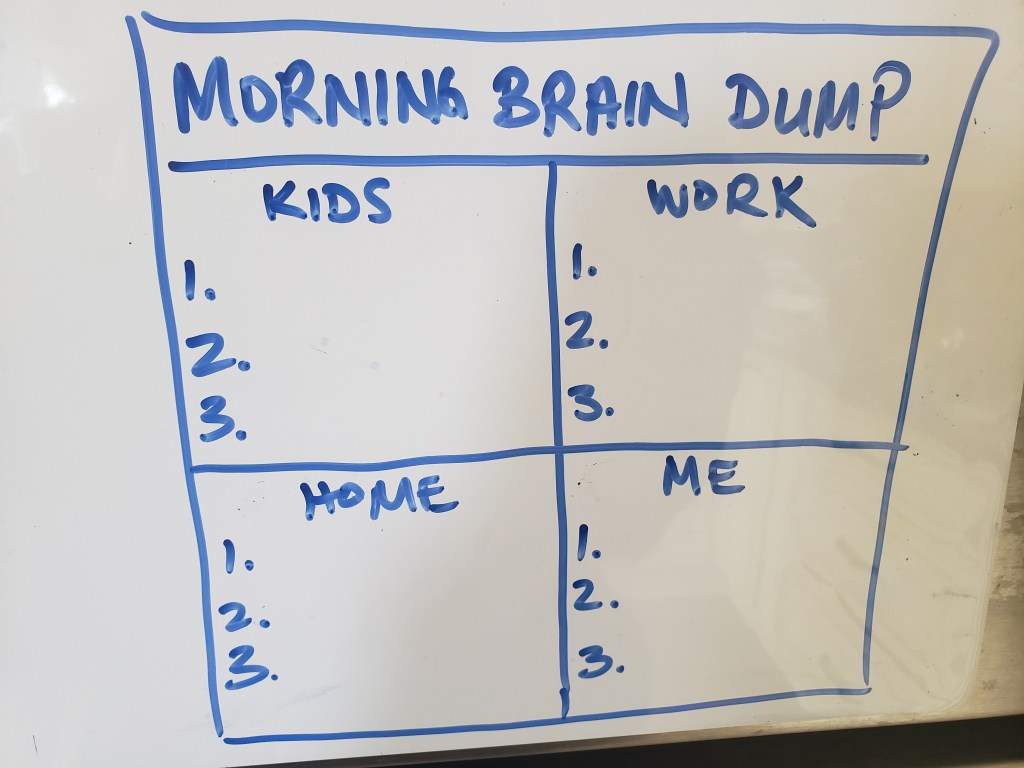 For my morning brain dump I love to use my whiteboard on my fridge. My list stays right in my face all day, so I can easily be reminded of the things I actually need to do.