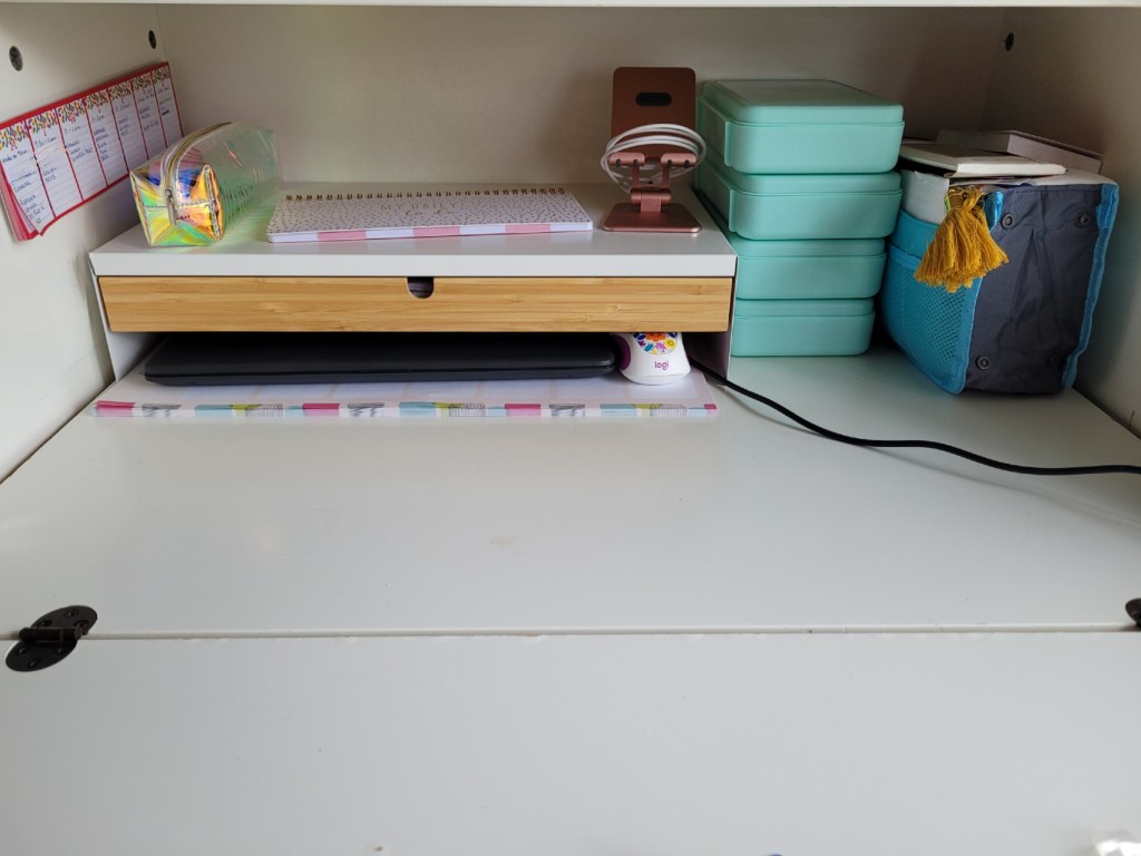 I have this secretary desk that I use for writing/typing, family planning, household management etc. You know, all the office/administrative stuff that goes with having a family and owning a home and, like, being human! Anyhoo…the moral of the story is that I love this desk, I love this little alcove that I have created for myself. AND, I found it for 20$ from someone online!!