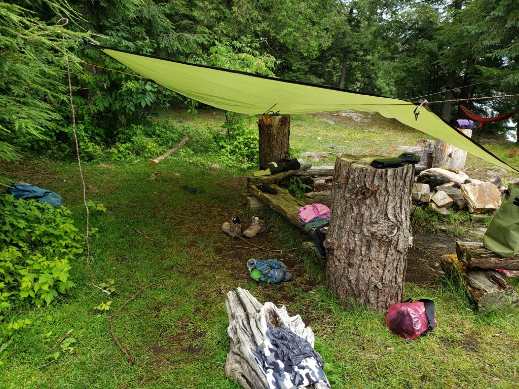 I can cook if need be or just snack on some no cook foods. I can play games (in fact, many a good memory has been made with Yahtzee or Farkle under a tarp!) I can read (especially when camping solo!) I can gather rain water as a drinking source! I can even have a glass of wine or two.