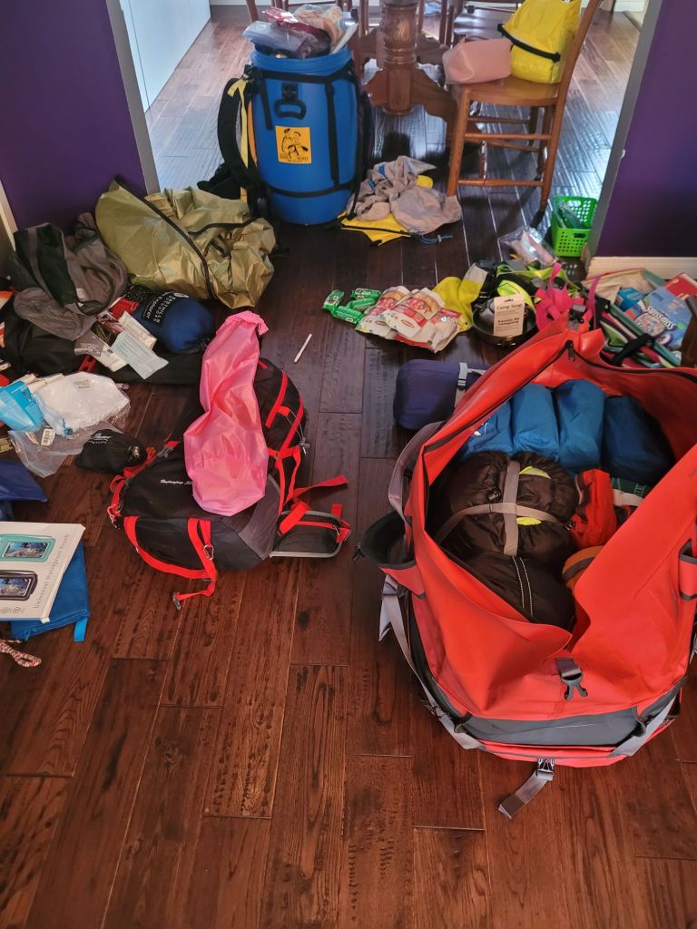 It does make a huge mess, especially after working hard to clear a space for me to actually do my gear dump. But it’s so exciting as all the gear is placed into the appropriate packs because the space gets tidied up just as fast as it got it all messy!