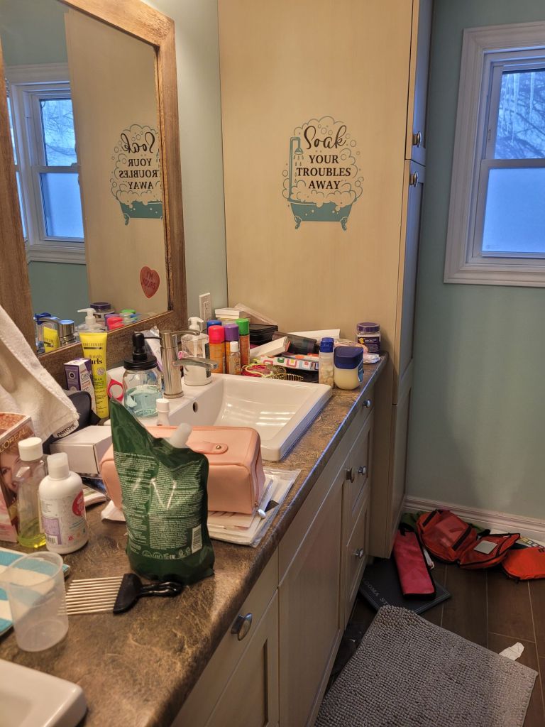 Some stuff was garbage, some stuff was recycling, some stuff just straight up didn’t belong in the bathroom, and some stuff made it’s way out the door as a donation!
