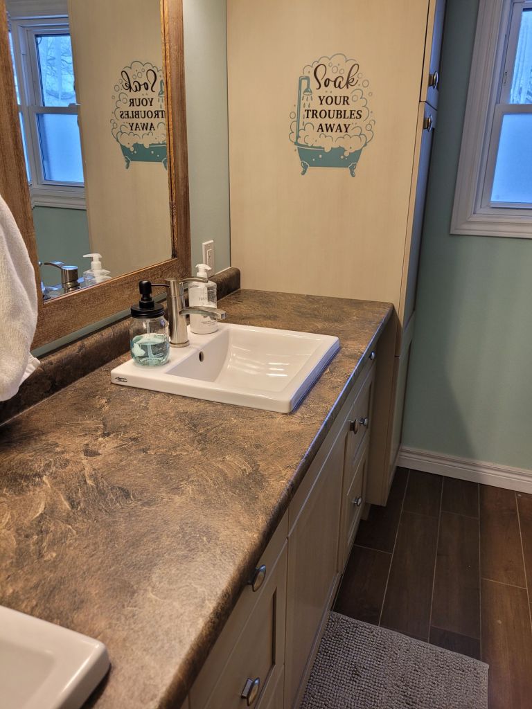 Well, I had my work cut out for me with that bathroom! Remember the counters?