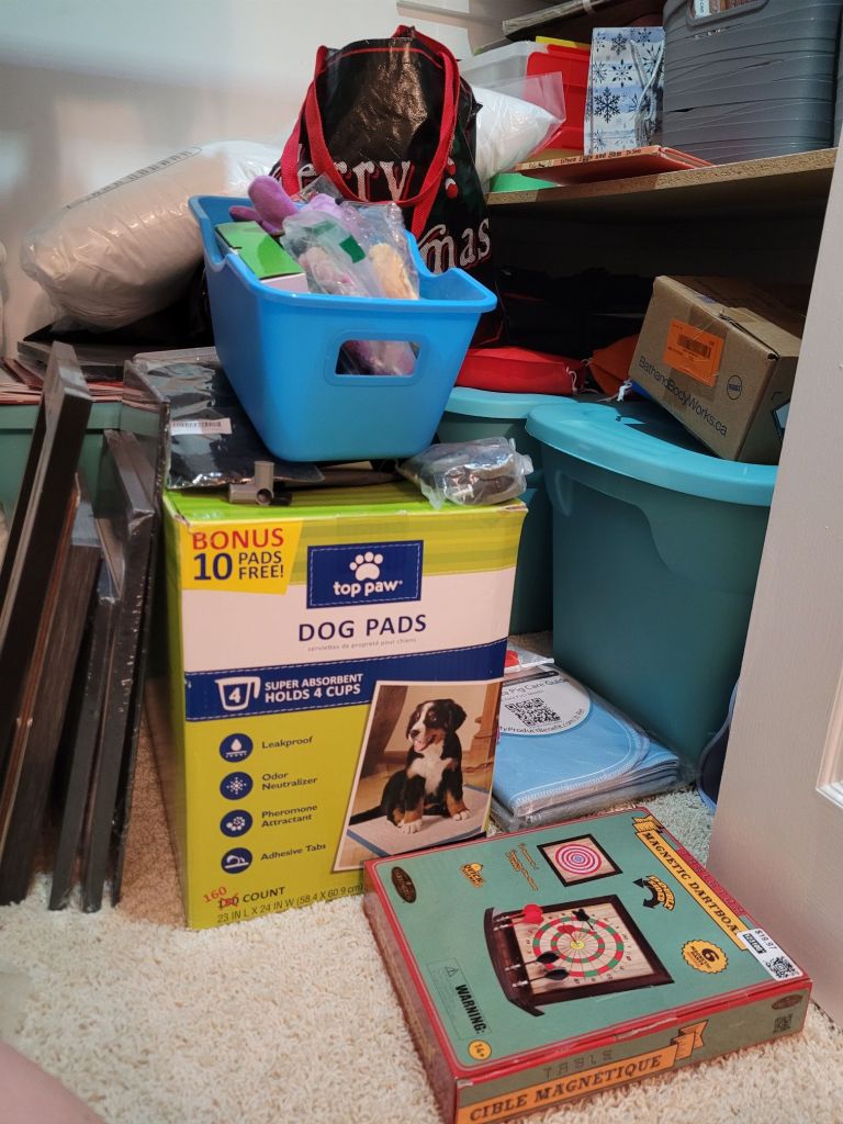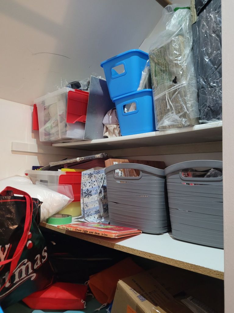 So the top shelf in my closet stayed the same, but the rest of it got a face lift, and even the bins got sorted. They keep secret gifts in them for my own family, so I can’t share what’s inside! But, I assure you, they are now easier to use, and my brain has been reminded of their content for upcoming birthdays and holidays!